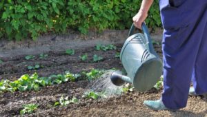 Donc, dans première fois après le semis souhaitable maintenir une humidité élevée dans le jardinafin que les plants apparaissent ensemble. En règle générale, cela prend environ 3 à 5 jours, mais après une germination de 1 à 2 semaines, le jardin doit être maintenu humide. Il y a deux façons: soit un arrosage constant, soit vous pouvez couvrir le lit avec un film qui retiendra l'humidité.
