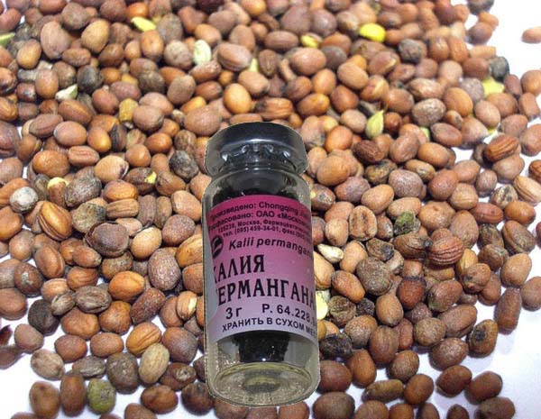 - Avant le semis, il est conseillé (mais pas nécessaire) de faire tremper les graines pendant 24 heures dans une solution rose de permanganate de potassium.