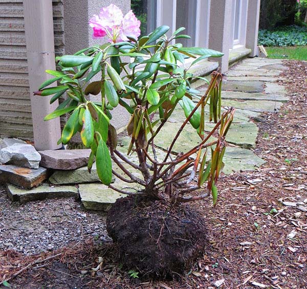 Parfois, il arrive que la plante ne prenne pas racine à l'endroit choisi et doit être transplantée dans un endroit plus approprié. Les rhododendrons n'ont pas peur de la transplantation, car ils ont un système racinaire assez compact, cependant, vous devez être guidé par certaines règles pour changer le lieu de résidence d'un arbuste: