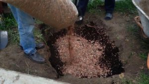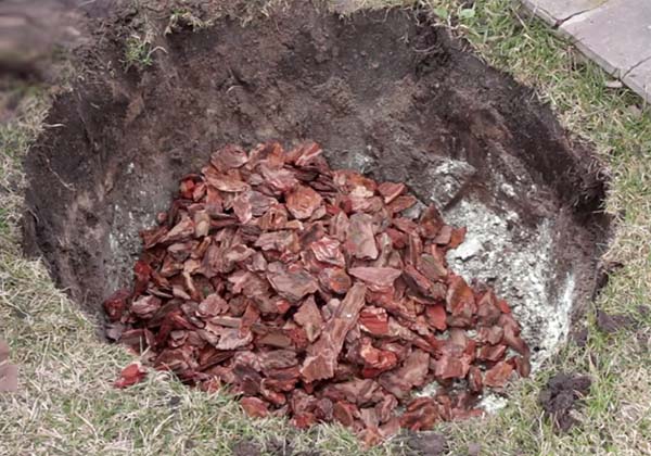 - Ne pas clôturer le semis le long du diamètre extérieur de la fosse de plantation du sol du jardin (cela est particulièrement nécessaire si vous avez un sol argileux).
