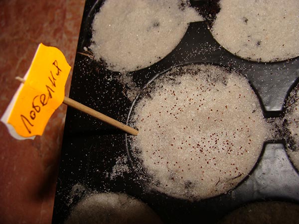 Remarque! Les graines de Lobelia sont très petites, donc les producteurs de fleurs expérimentés recommandent de les mélanger avecle sableà répartir ensuite uniformément sur le bac de plantation.