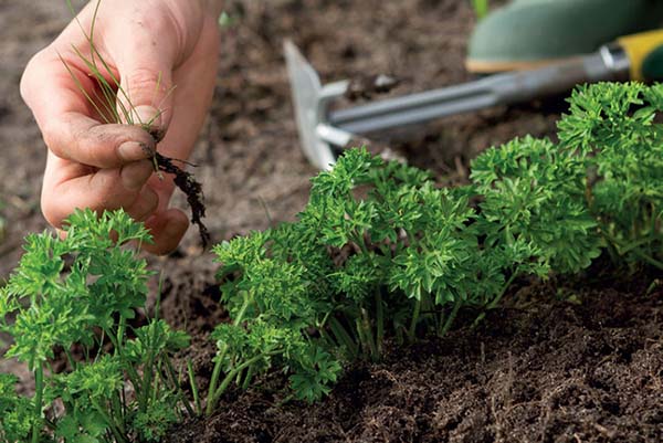 Les soins supplémentaires pour le persil en plein champ consistent en un arrosage régulier au fur et à mesure que le sol sèche, un éclaircissage, un relâchement et un désherbage des mauvaises herbes au tout début de son développement.