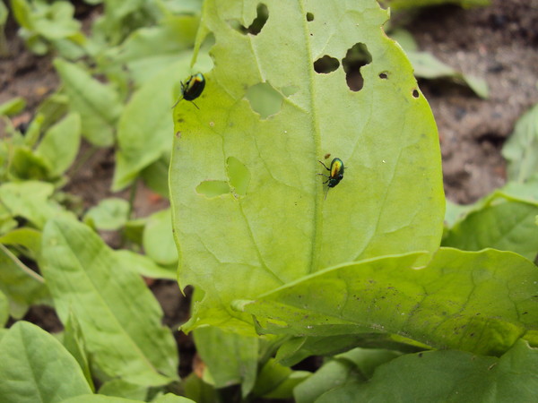Très souvent, vous pouvez voir comment les feuilles d'oseille sont toutes dans des trous, comme si quelqu'un les avait mangées. C'est le travail des mains (plus précisément des dents) d'un coléoptère - un coléoptère de l'oseille. Pour qu'il n'attaque pas les plantations aussi souvent, le jardin doit toujours être maintenu propre et exempt de mauvaises herbes. La meilleure mesure de protection est de jeter le spunbond sur le jardin au début de la saison de croissance, le scarabée ne pourra alors pas pénétrer. Et vous pouvez également pulvériser les plantes avec des infusions cendre de bois et la poussière de tabac, ou le pyrèthre ou l'achillée millefeuille. Mais s'il y a beaucoup de coléoptères, il est préférable d'utiliser divers insecticides (de manière optimale biologiques, par exemple "Agravertin" ou "Akarin", et vous pouvez également utiliser "Fitoverm" et "Aktofit".