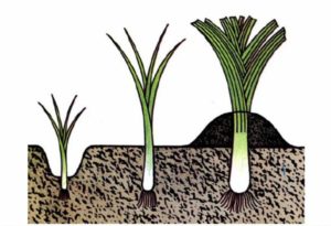 Remarque! La partie la plus importante du soin des poireaux est le buttage car c'est cela qui conduit au blanchiment des parties inférieures de sa tige.