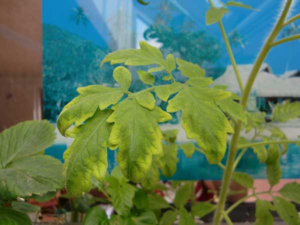 De plus, les plants de tomates peuvent commencer à jaunir en raison de conditions de croissance perturbées (régime d'arrosage, éclairage, température), ce qui entraîne des carences nutritionnelles.
