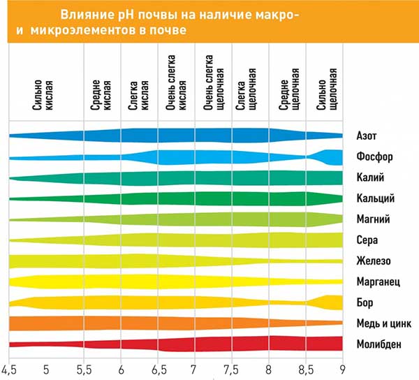 Le fait est que certains nutriments se lient et deviennent pratiquement inaccessibles (difficiles à digérer) pour les plantes à des niveaux d'acidité du sol plus ou moins élevés (pH).
