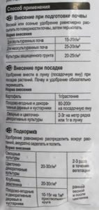 Pour les dosages calculés pour fertiliser et nourrir diverses cultures, voir l'emballage (dans les instructions). Avoir contenu de différents fabricants nutriments (phosphore et azote) pouvez différer, en conséquence, les taux de consommation seront ajustés.