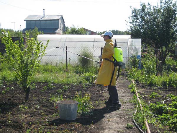 - Le traitement ne doit être effectué que à des températures positives (de préférence jusqu'à +5), de plus par temps nuageux et calme, tôt le matin ou le soir (après le coucher du soleil).