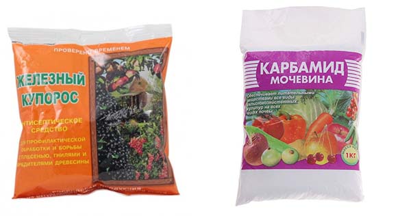 À cette fin, le sulfate ferreux est utilisé de la même manière sulfate de cuivre... Pour éradiquer le traitement, vous devez préparer une solution à 3% dans laquelle, si vous le souhaitez, pour améliorer l'effet (contre les larves d'insectes nuisibles), vous pouvez ajouter de l'urée (solution à 5 à 7%), ainsi que 200 à 250 ml de savon liquide ou de détergent à vaisselle (pour mieux adhésion).
