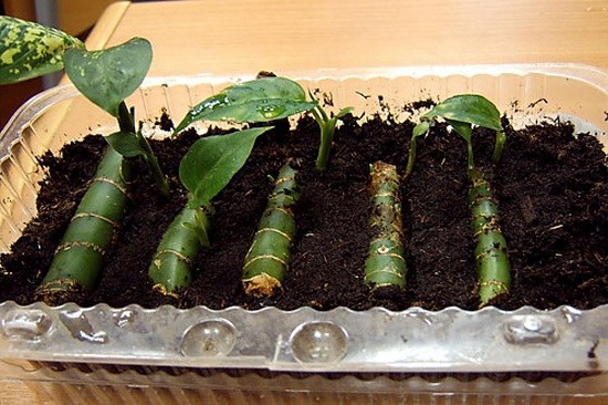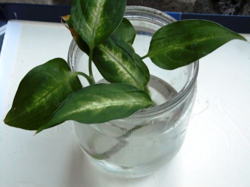 Pour les boutures dieffenbachia, les boutures peuvent être enracinées à la fois dans l'eau et dans le sol.