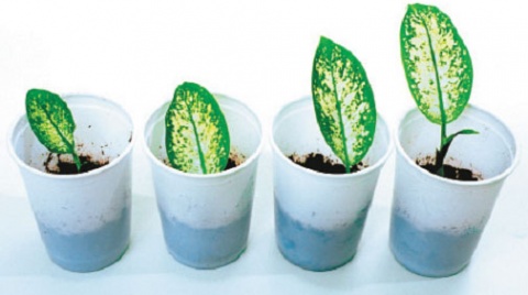 - un jour plus tard, dieffenbachia est plantée dans le substrat fini.