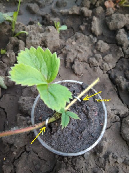 Au fait! En règle générale, cette méthode d'enracinement d'une moustache est utilisée lorsque les fraises sont cultivées sur un tissu non tissé noir ou spunbond blanc.