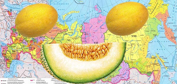 Ainsi, sur Sud de la Russie les graines de melon sont plantées en terre fin avril-début mai, en Voie du milieu - fin mai-début juin. Dans le même temps, les melons sont plantés à Oural et Sibérie.