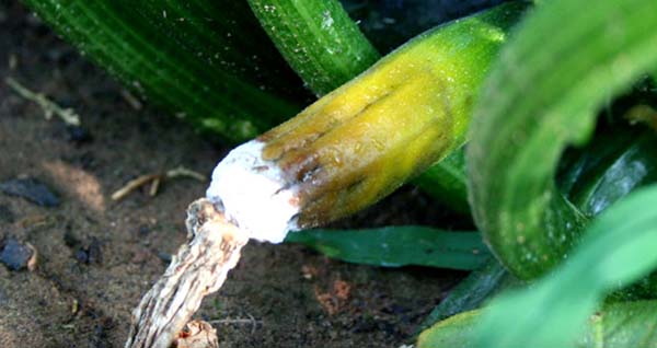 Une autre raison, souvent oubliée, est la situation où la fleur ne tombe pas de l'ovaire. Il commence à se décomposer, puis l'ovaire lui-même se décompose. Par conséquent, il est nécessaire d'examiner régulièrement les ovaires de courgettes et de retirer manuellement les fleurs lorsque le fruit pousse déjà.