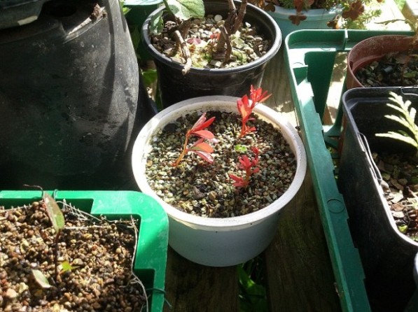 Et au printemps, transplantez-le dans des pots ou directement sur le lit de jardin et couvrez-le d'un film ou d'un verre / flacon à découper (pour créer un effet de serre). De plus, tout est le même que pour les boutures vertes.