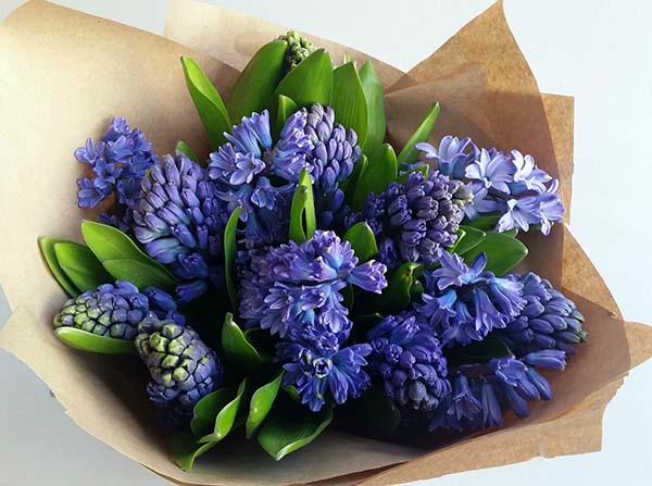 Mais un bouquet de jacinthes de différentes nuances est plus magnifique, coloré et solennel: