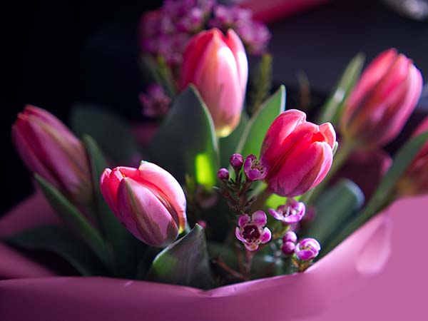 Il est difficile d'imaginer une fleur plus appropriée et symbolique pour le 8 mars. Les tulipes délicates, printanières et gracieuses ont fière allure et étonnantes à la fois dans un bouquet sans autres plantes et dans une composition.
