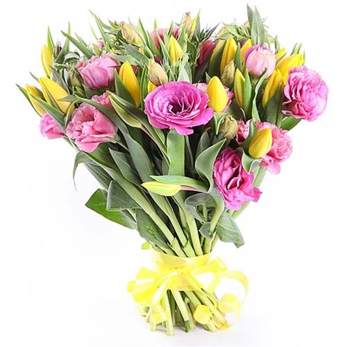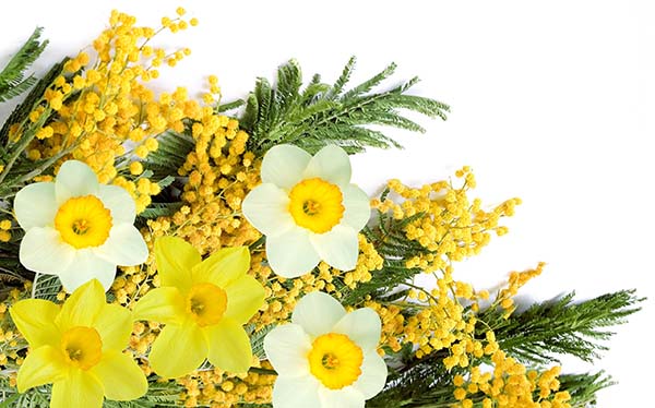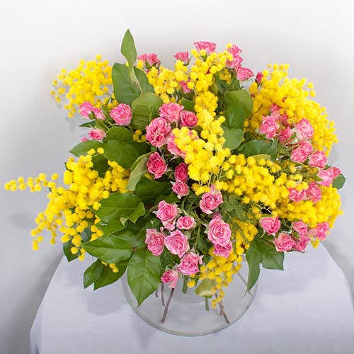 Cependant, si vous souhaitez diversifier la composition et la rendre un peu plus intéressante, alors la combinaison idéale au mimosa... Un tel bouquet sera encore plus printanier et frais!