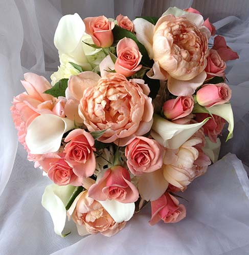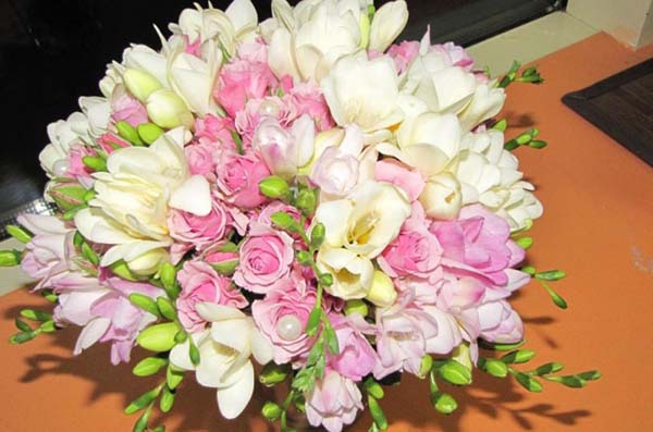 Un bouquet laconique, composé de fleurs de la même nuance, est très élégant. La photo ci-dessous le prouve: