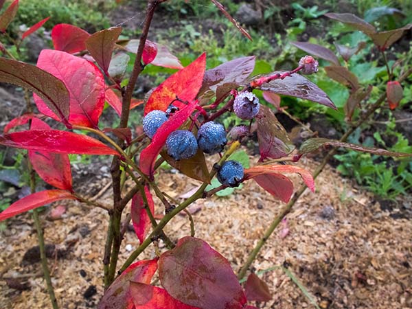 La dernière alimentation (automne) des myrtilles se fait après la fructification et la cueillette des baies, c.-à-d. en automne.