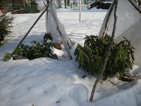 En effet, la plupart des espèces et variétés de rhododendrons ne nécessitent aucun abri contre le gel. Une autre chose est qu'ils doivent être protégés du soleil éclatant du début du printemps (des coups de soleil), et cela peut être fait non pas à l'automne, mais déjà à la fin de l'hiver et au début du printemps.