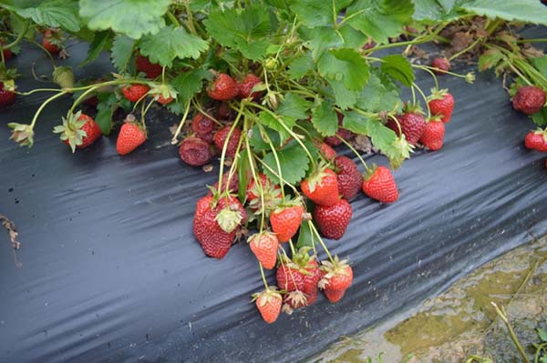 En outre, les fraises sont souvent cultivées sous un matériau de couverture, généralement noir.