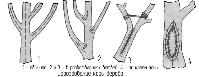 Si vous n'avez rien réussi à faire, mais qu'il y a eu du gel et que les pommiers n'ont pas fleuri, essayez de dépenser sillon d'écorceen d'autres termes, faites des coupes verticales dans l'écorce au bois d'une longueur de 5 à 7 centimètres avec un couteau de jardin.
