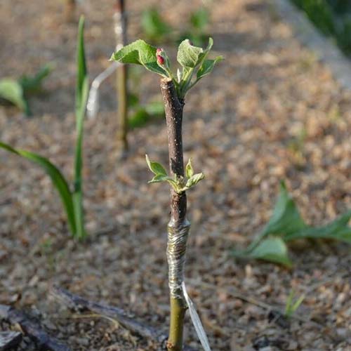 Toutefois!Prenez votre temps! Si vous retirez le ruban à l'avance, l'écorce tendre et jeune peut être brûlée par le soleil (craquelée).