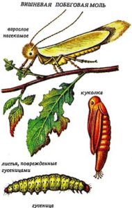 Après la floraison, lorsque de petits ovaires se forment, il est nécessaire de produire traitement complexe des cerisiers contre les maladies (surtout contre moniliose (brûlure moniliale, pourriture moniliale des fruits), ainsi que coccomycose et maladie du clotterosporium)et contre les ravageurs (charançon du cerisier, mouche du cerisier, pucerons, acariens, papillon de nuit, papillon du cerisier, tenthrède visqueux du cerisier). En général, il est similaire au précédent ("par des boutons de rose").