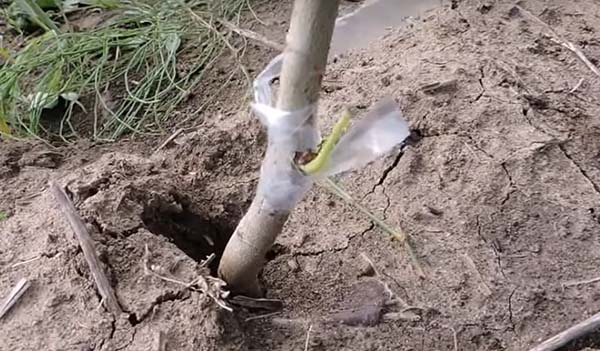 Certains jardiniers mettent un sac en plastique (sac) sur le dessus du greffon pour une meilleure adhérence, mais ce n'est pas du tout nécessaire, car il est beaucoup plus important de bien fixer le site de vaccination avec du ruban adhésif.