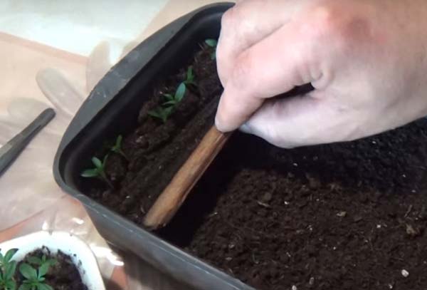 L'essence de la deuxième méthode pince à épiler suivant: chaque plante est soigneusement prise avec une pince à épiler et avec la même pince à épiler enfouie dans le sol. L'essentiel ici est de calculer la puissance de serrage avec des pincettes pour ne pas transférer la racine.