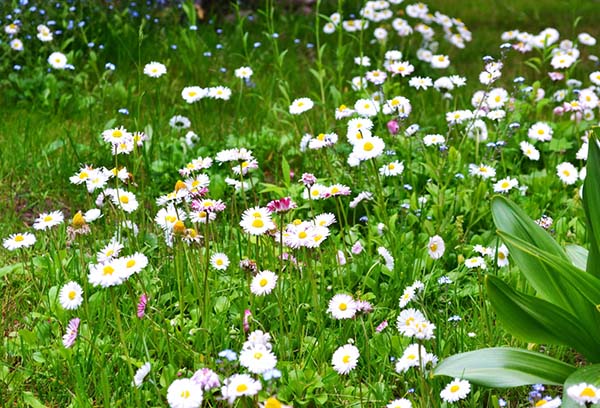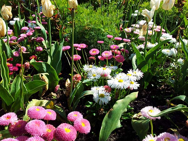 Au fait! Les marguerites sont très jolies avec tulipes, jonquilles et d'autres plantes bulbeuses.