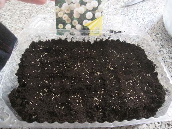 Si vous le souhaitez, vous pouvez saupoudrer, ou plutôt "saupoudrer" d'une couche de 0,1-0,2 cm de terre (ou de sable), mais vous ne pouvez pas l'arroser. En fait, le plus souvent, les petites graines ne sont pas saupoudrées, mais de nombreux cultivateurs réussissent à pousser avec une poudre légère.