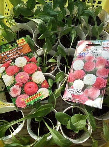 Si vous avez planté des marguerites en février-mars, vous devrez naturellement les déballer dans des tasses, des pots ou des cassettes séparés. Et assurez-vous de vous éclairer!