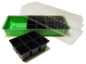En tant que conteneur de plantation, il est très pratique d'utiliser des conteneurs spéciaux pour la culture des semis (mini-serres), vendus avec une palette et un couvercle en plastique.
